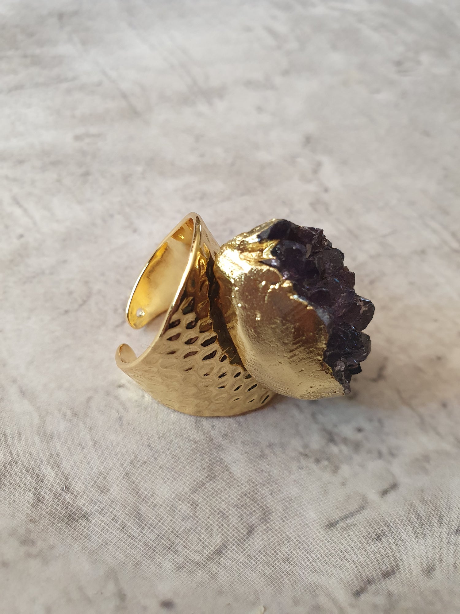 24k gold plated adjustable ring with amethyst.
