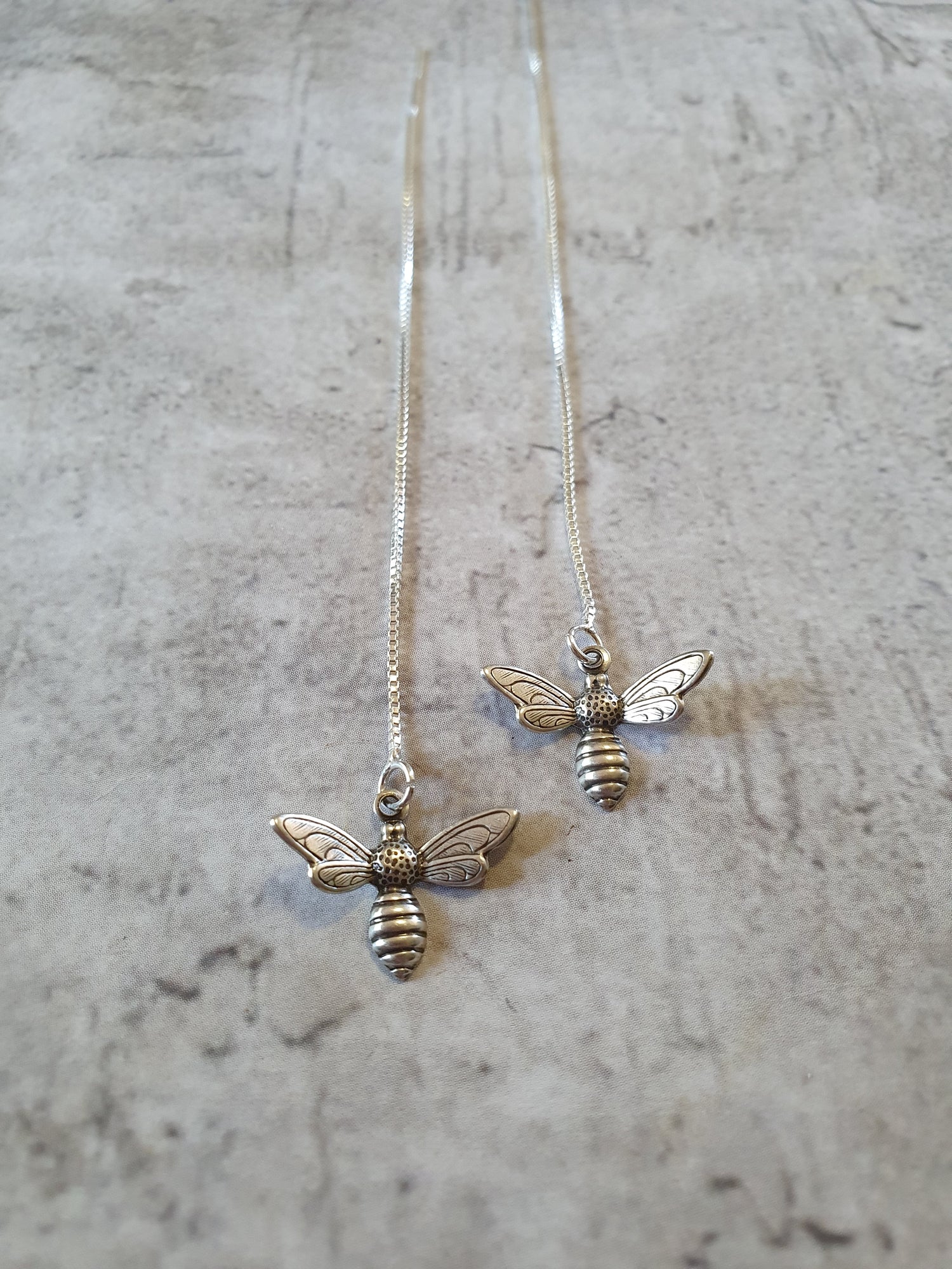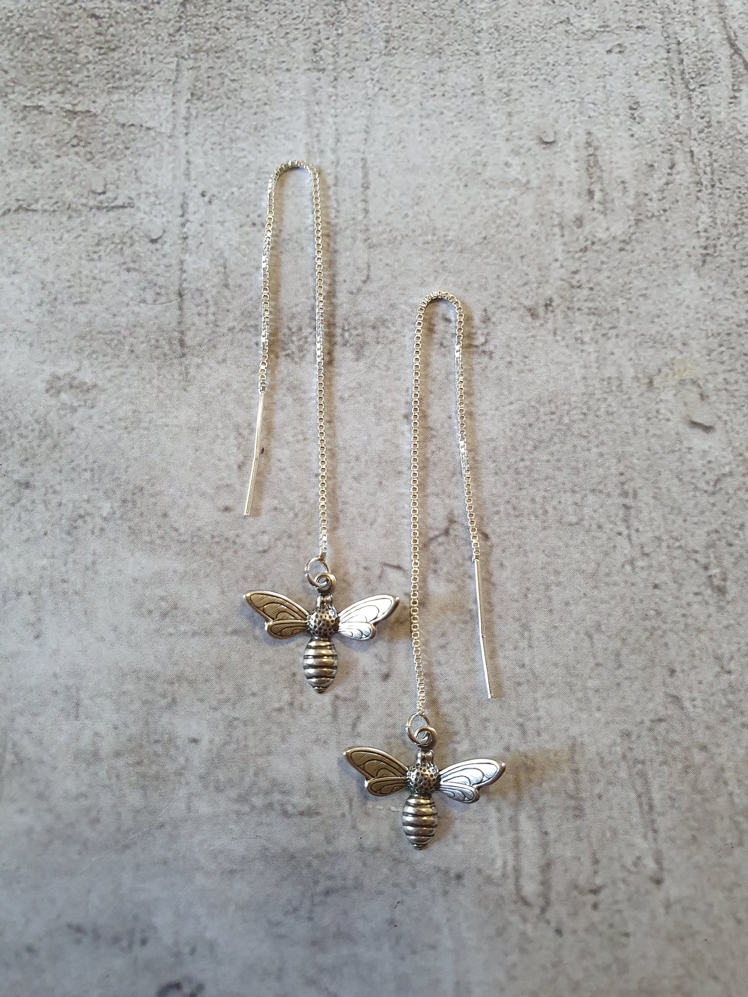 Sterling silver earthreads with teeny sterling silver plated bees .