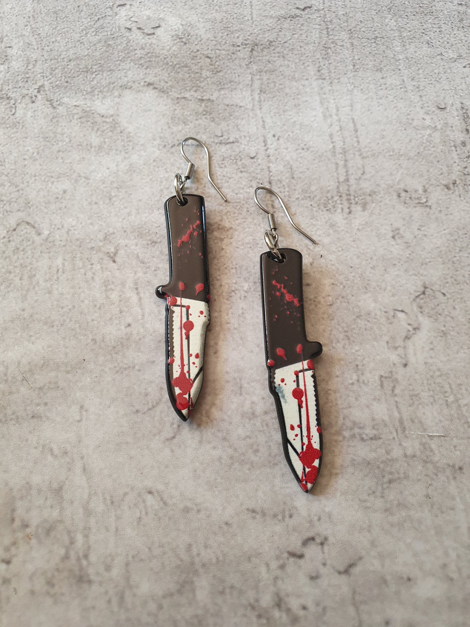Lightweight resin bloodied knives. Surgical steel earwires.