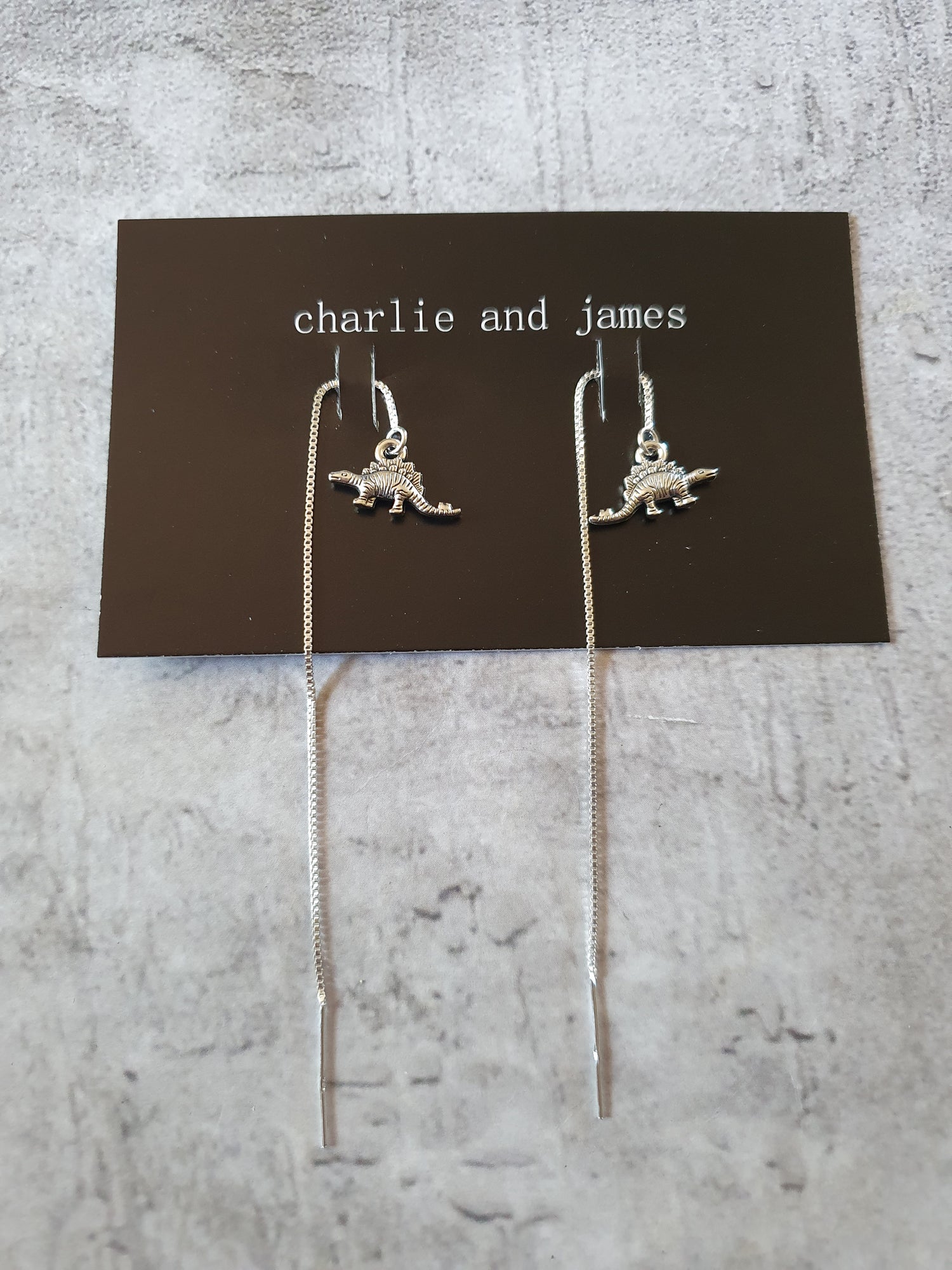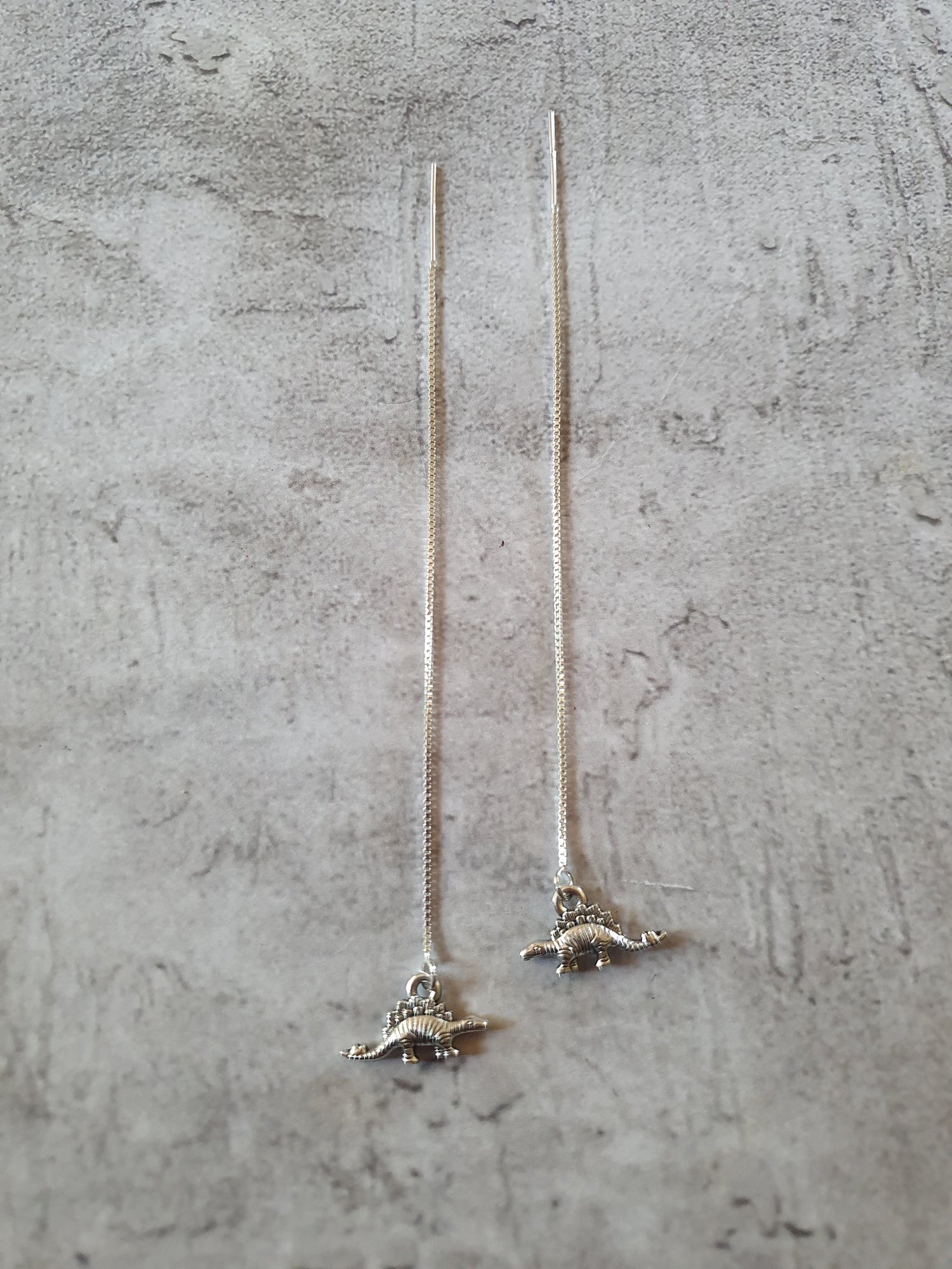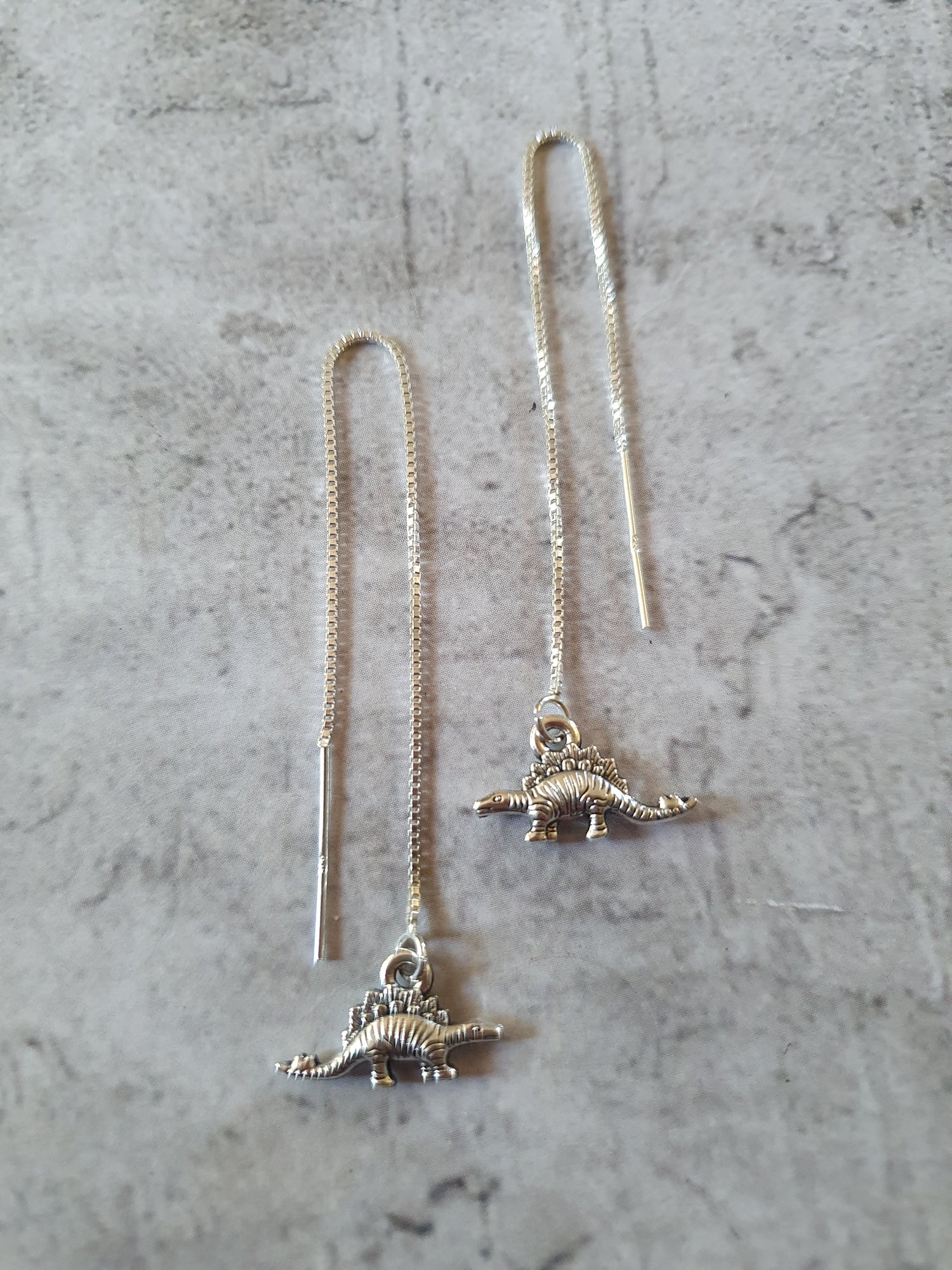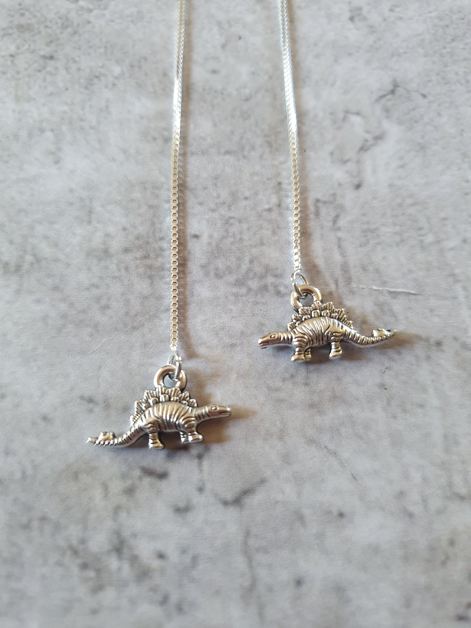 Sterling silver box chain earthreads with silver stegosaurus charms.