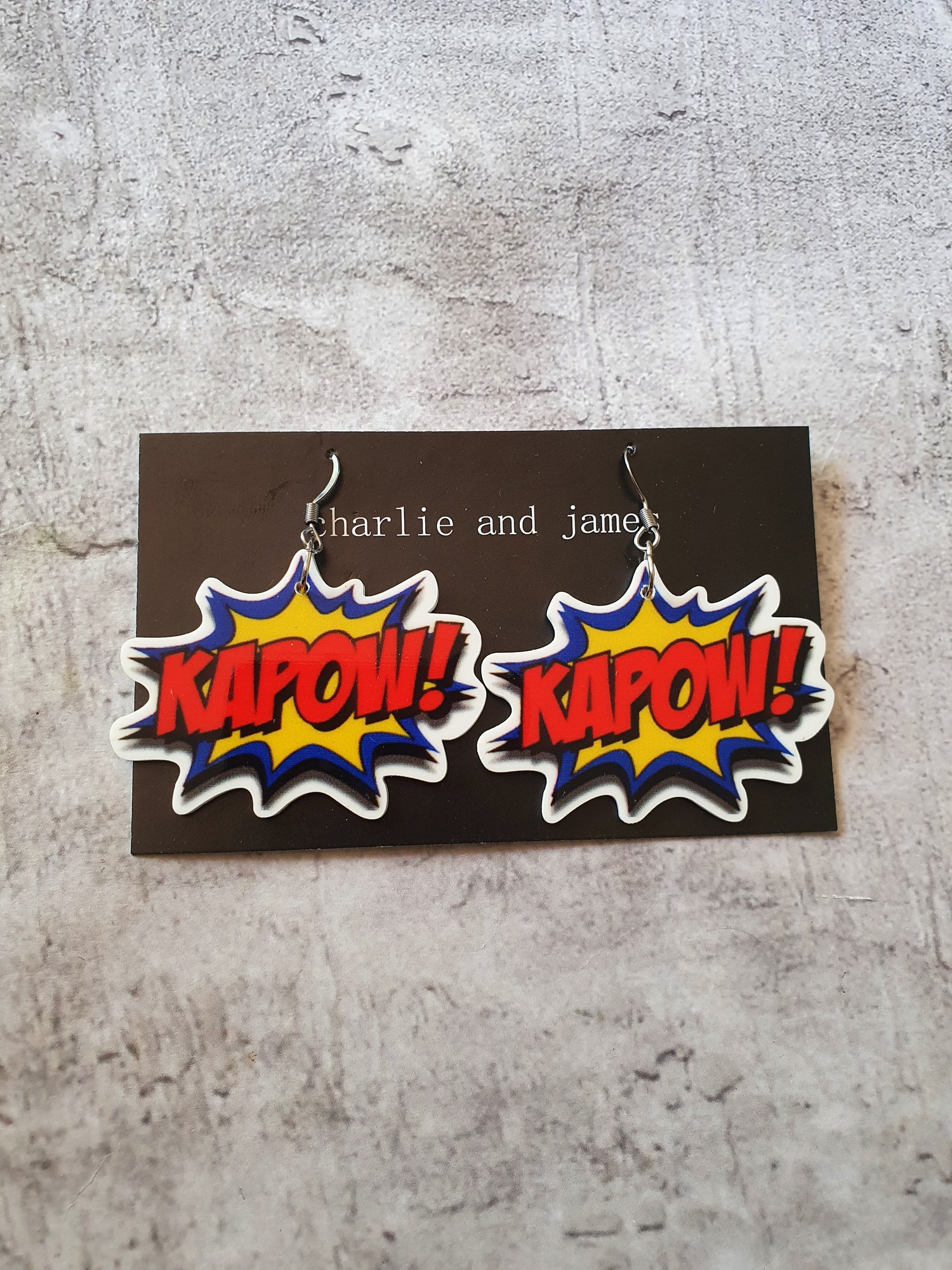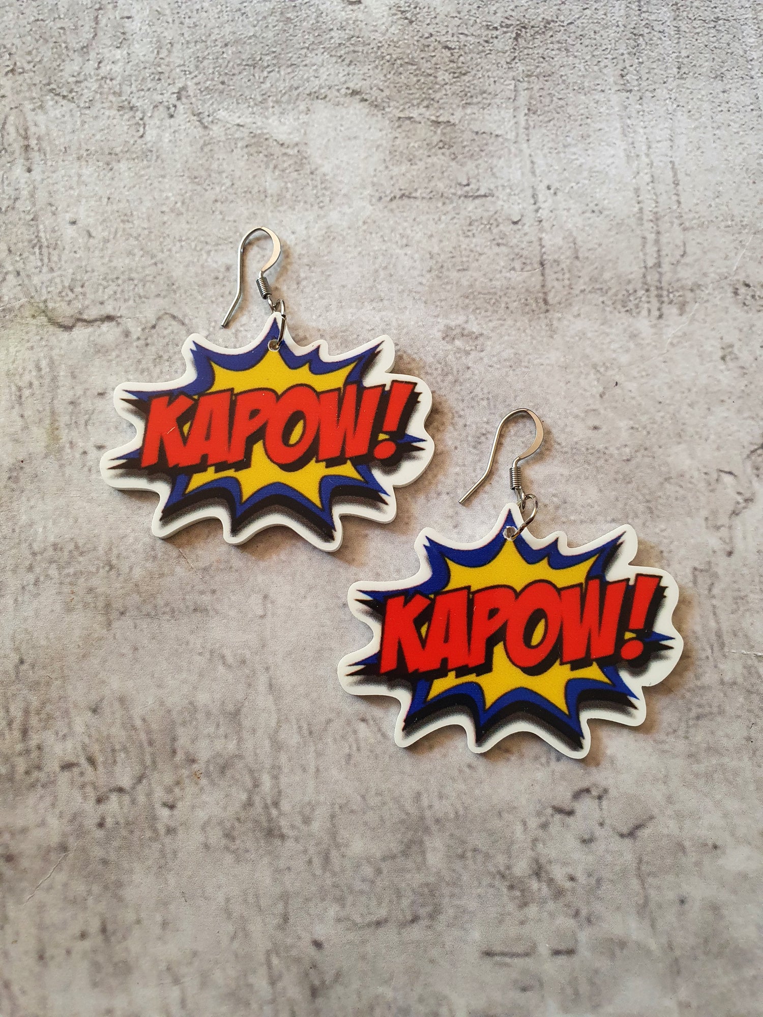 Lightweight resin printed with Kapow! Surgical steel earwires.