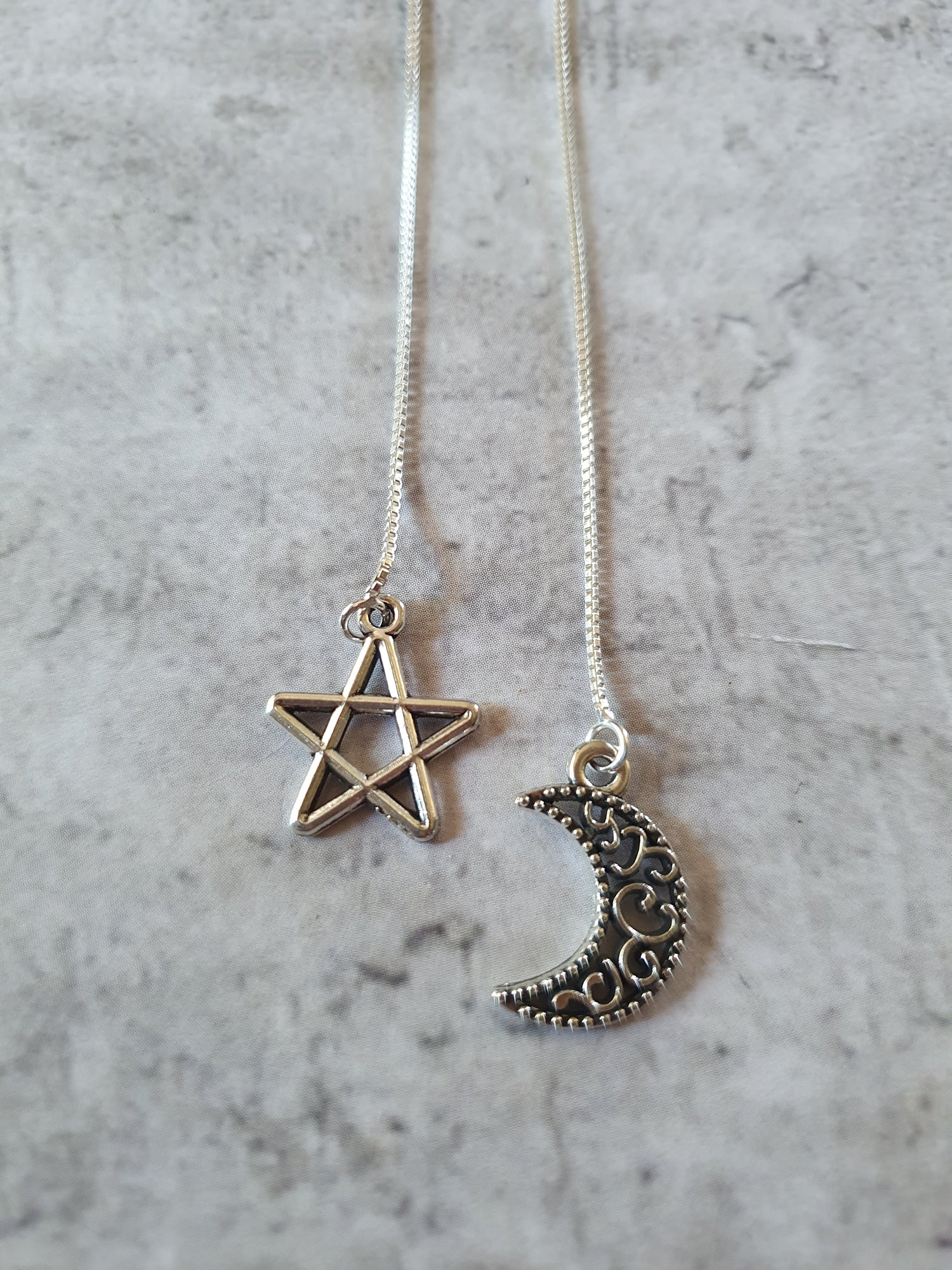 Sterling silver box chain earthreads with mismatched silver moon and star charms.