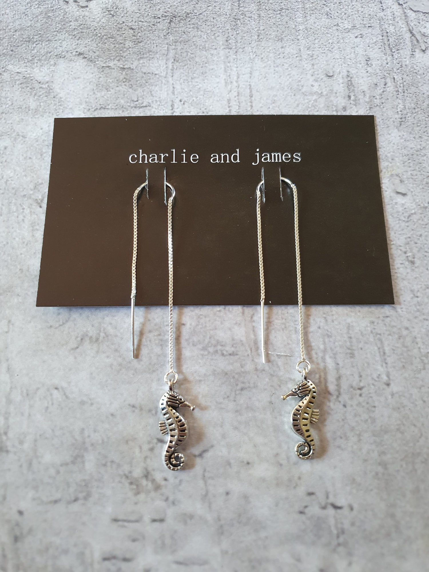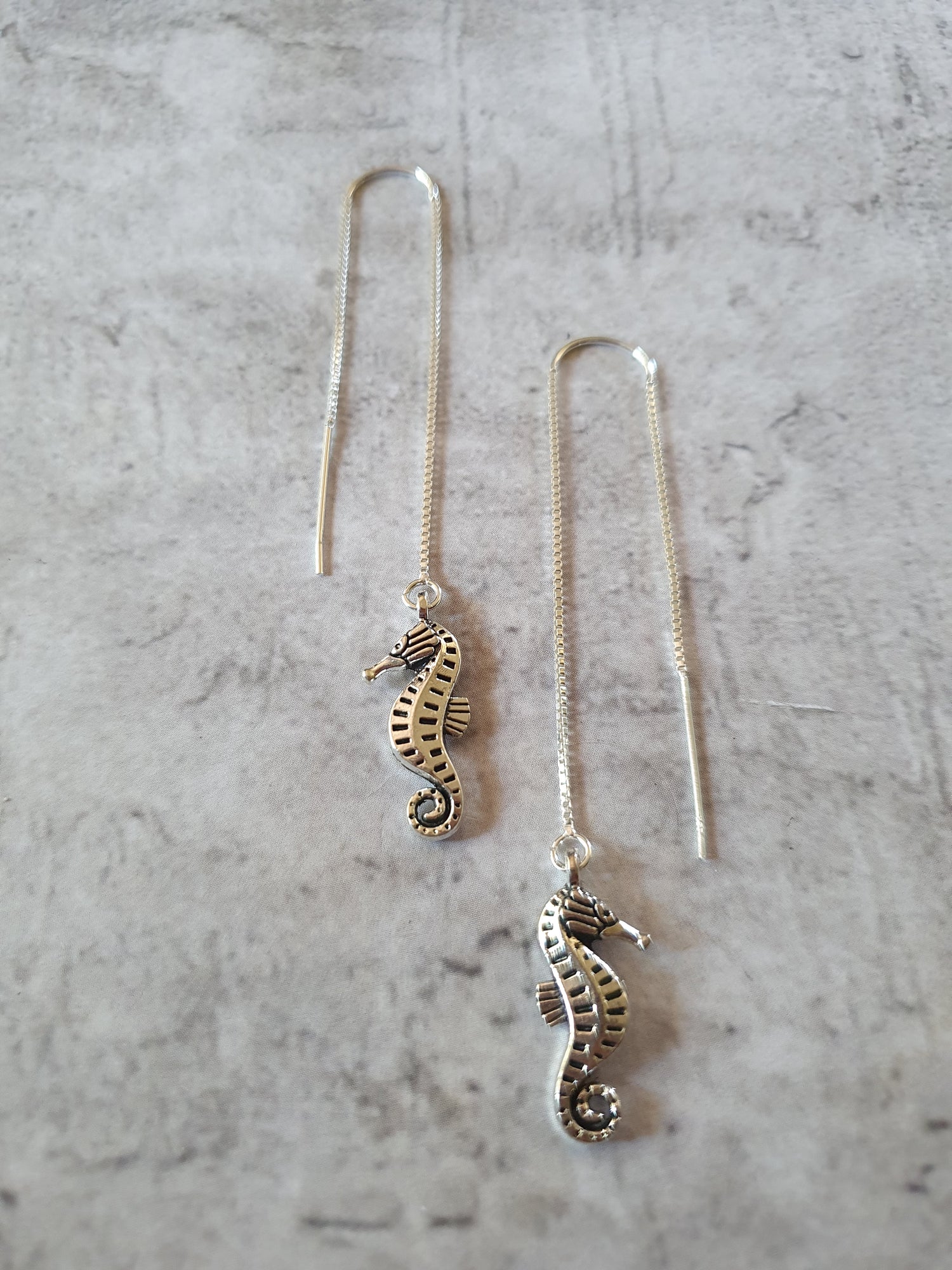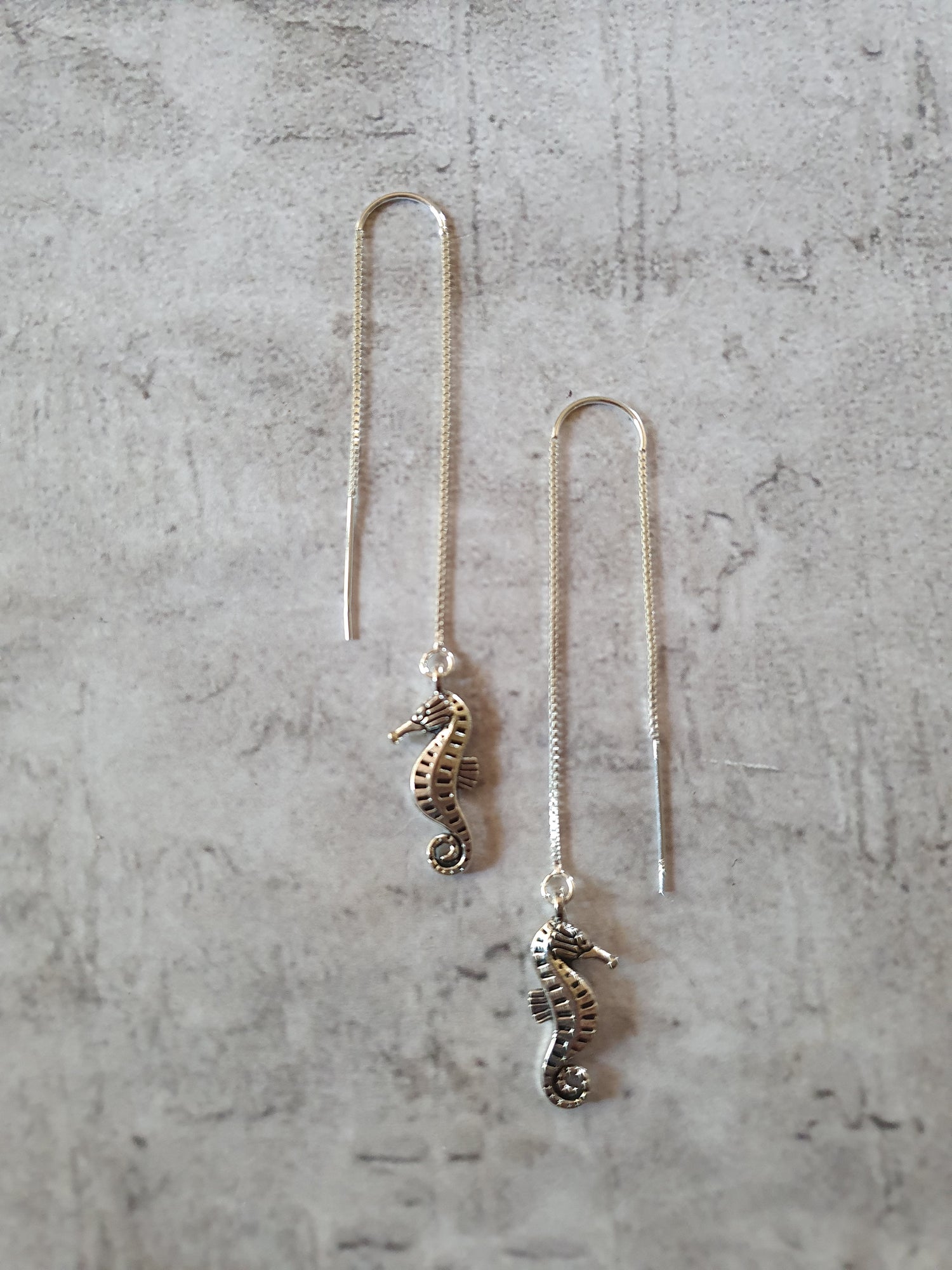 Sterling silver Utop box chain earthreads with seahorse charms.