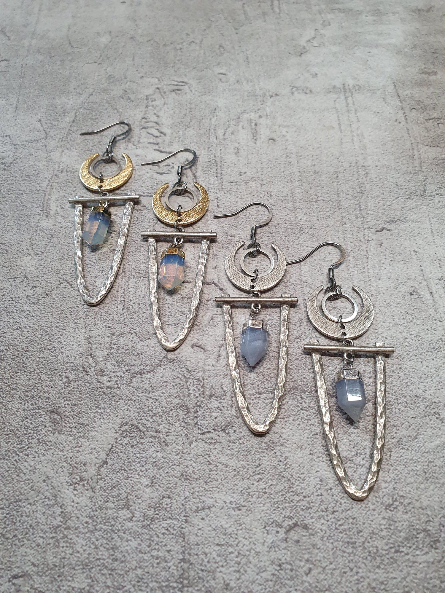 Mixed metal pagoda hoops with opalite semi precious points. Surgical steel earwires. Also available in silver with blue lace agate points. Handmade in Perth WA.