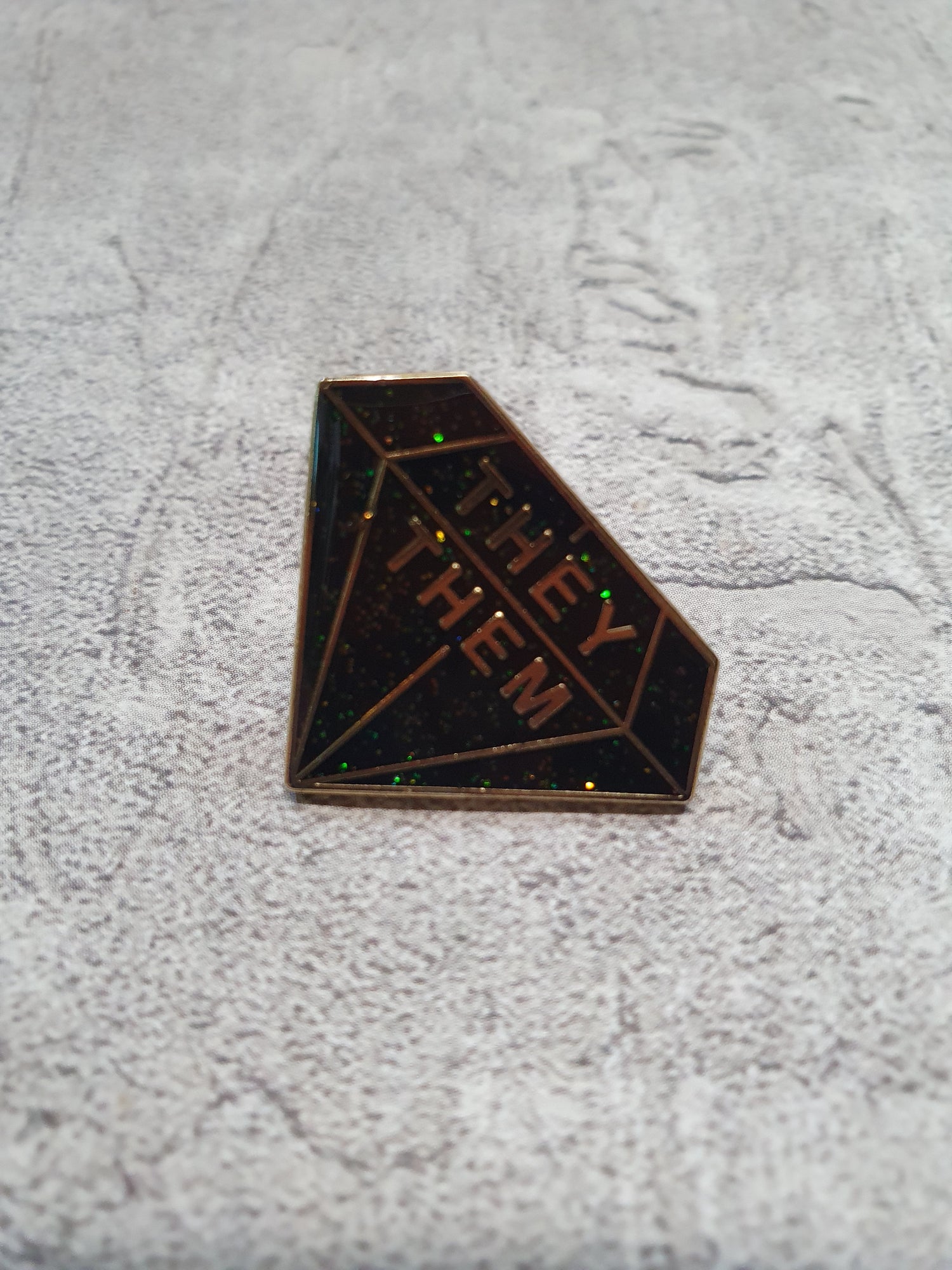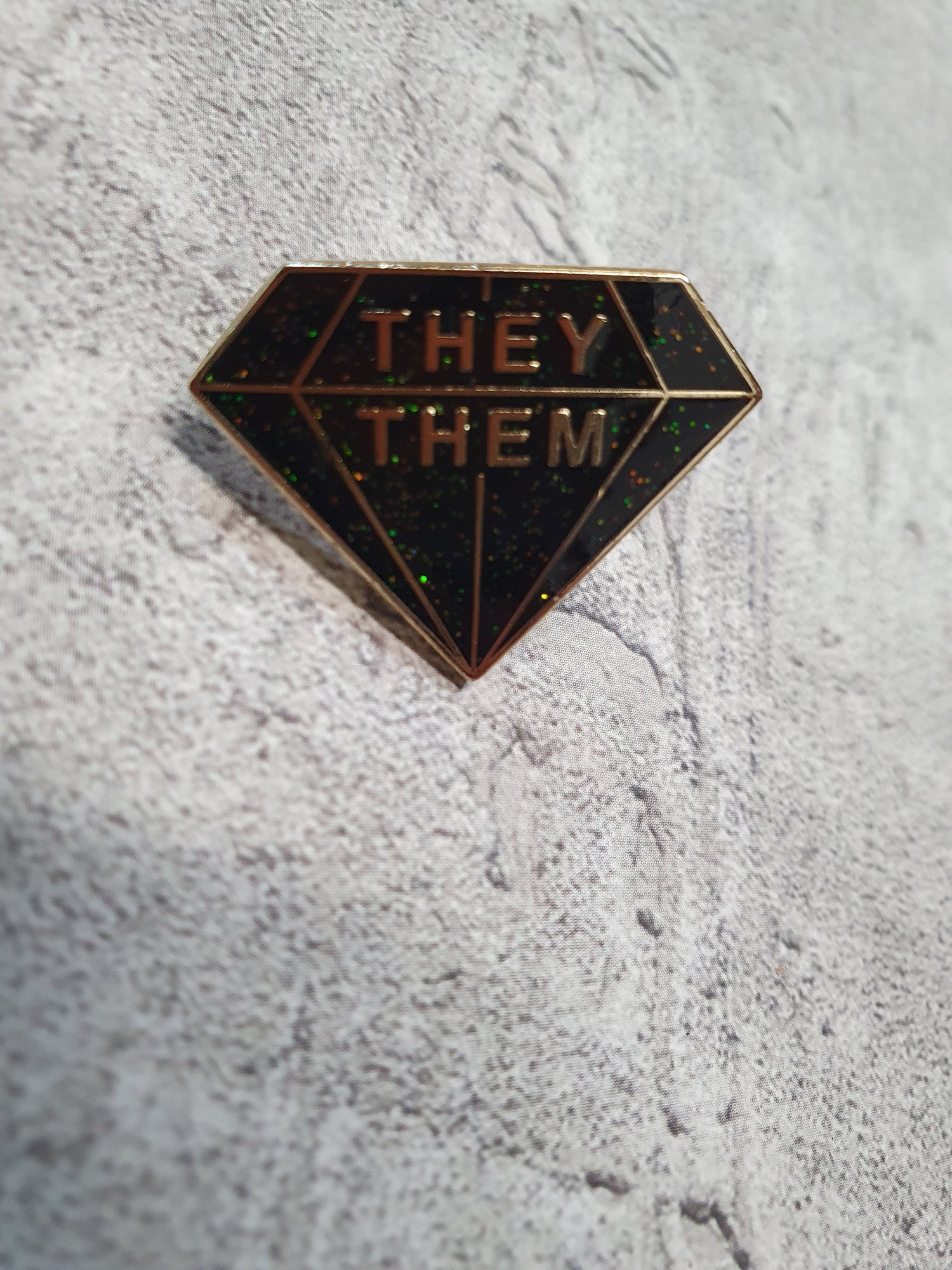 Enamel They/Them pronoun pin with rubber stopper.