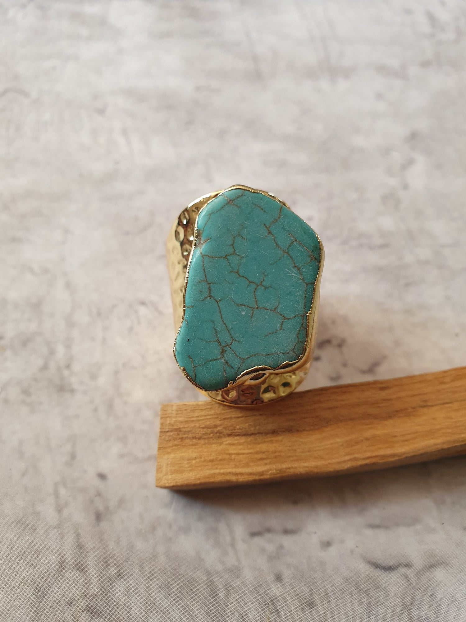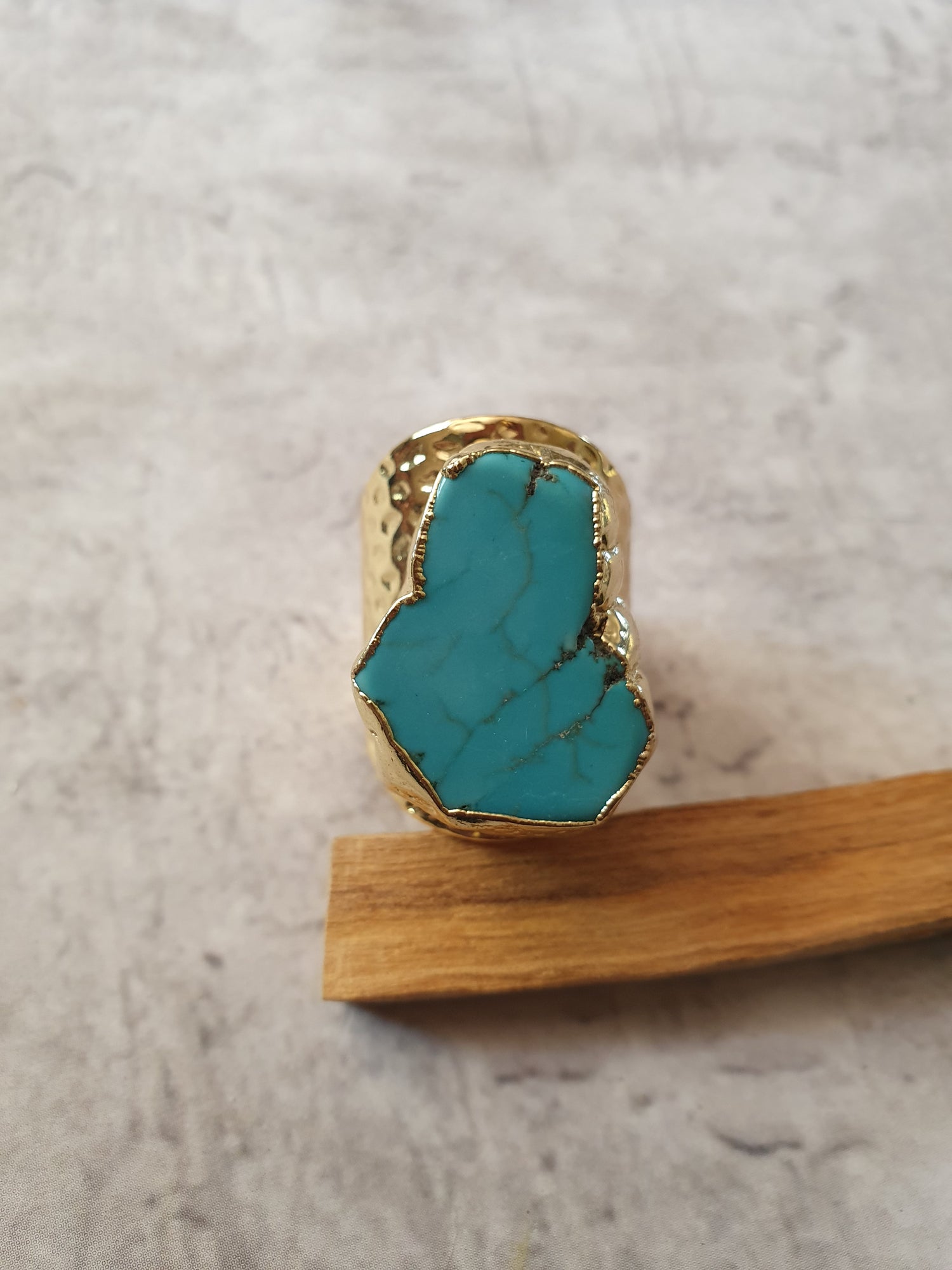 24k gold plated adjustable ring with turquoise howlite.